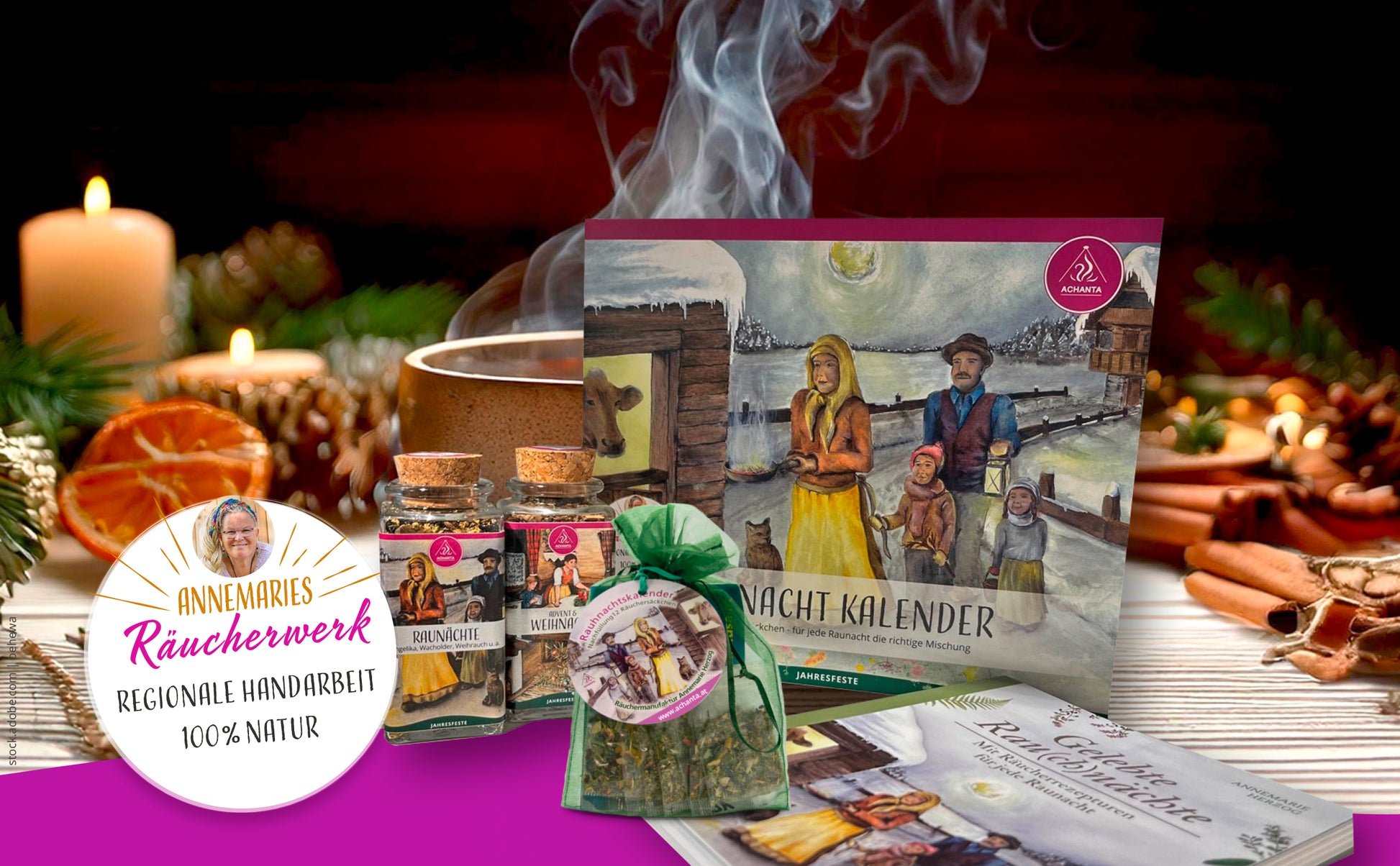 In der ACHANTA Räuchermanufaktur werden nur Kräuter verarbeitet, die vor der Haustüre wachsen. Sie werden nach Mondphasen gepflückt und behutsam getrocknet. Damit sind sie länger haltbar, ausgiebiger und behalten ihre ursprüngliche Farbe.Die ACHANTA Räucherwerke werden ausschließlich in Handarbeit und aus 100% natürlichen Zutaten hergestellt. Sie werden ergänzt durch ein sorgfältig ausgewähltes Sortiment an ebenso hochqualitativem Räucherzubehör. Zu den Produkten